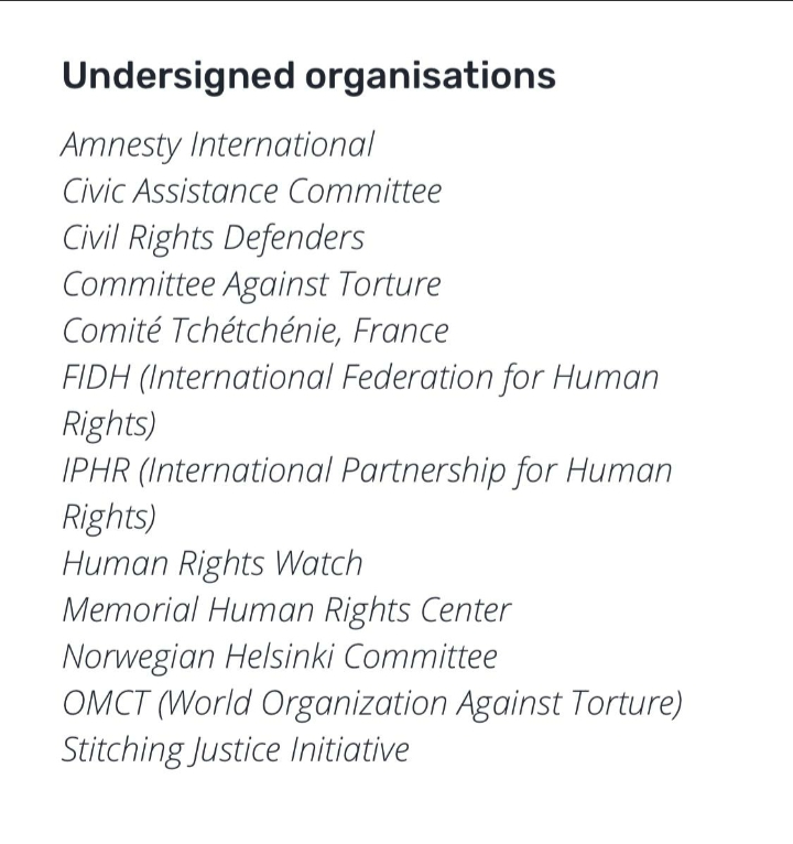 We also note with great concern that in the months following last year’s horrific murder of Samuel Paty, a teacher in a town on the outskirts of Paris, by 18-year- old Chechen refugee Abdullakh Anzorov, the number of Chechen asylum seekers being deported from France has been on the rise. According to Comité Tchétchénie, a French non-governmental group working to stop human rights abuses in Chechnya, between November 2020 and April 2021, the French authorities deported at least eight asylum seekers of Chechen origin, including Gadaev, to Russia. Two of them – Ilyas Sadulaev, deported from France on 12 March, and Lezi Artsuev, deported from France on 5 April – have disappeared upon return to Russia.